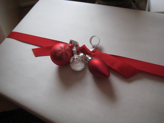 Another thing I like to do is buy ornaments in the after-Christmas sales, and use them the following year. That way, it really doesn't add much to the overall cost of the wrapping, but it sure packs a great visual punch!
